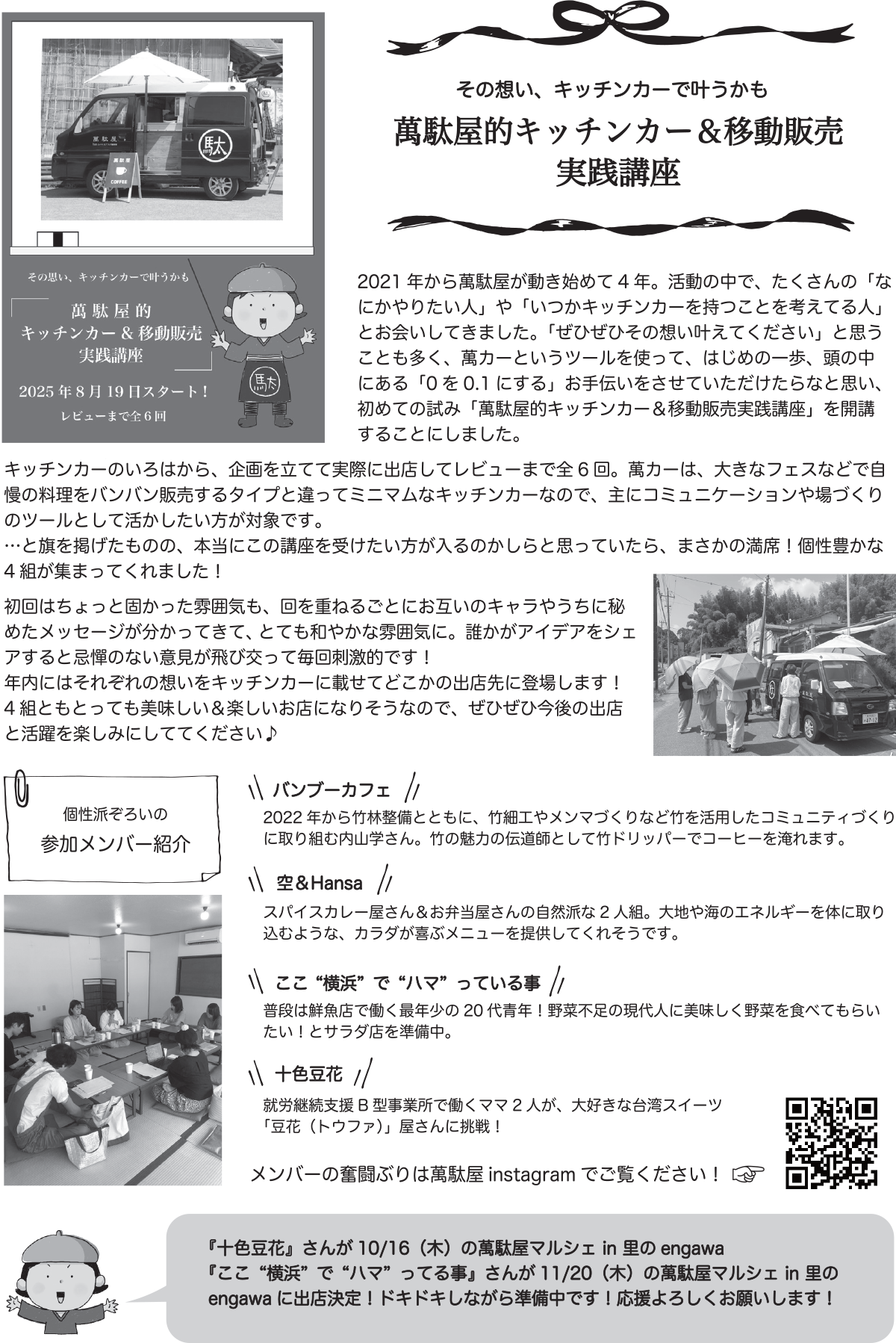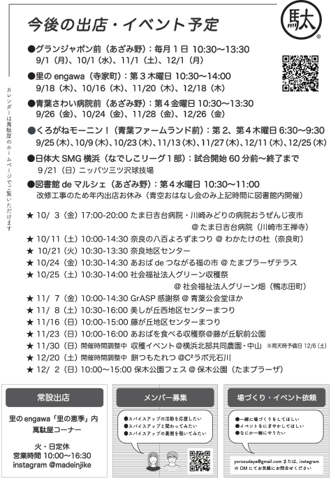 萬駄屋の秋の出店スケジュールを掲載したチラシができました。今回の特集は「萬駄屋的キッチンカー&移動販売実践講座」です。