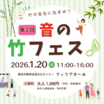 2026年1月20日(火)、青葉区民文化センター フィリアホールのホワイエにて、竹の音色に包まれる音楽イベント「音の竹フェス♪」を開催します。