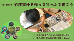 【参加者募集】こどもワークショップ「夏の自由研究 竹炭墨汁を作って竹ペンで描こう」を横浜市緑区および青葉区で開催します