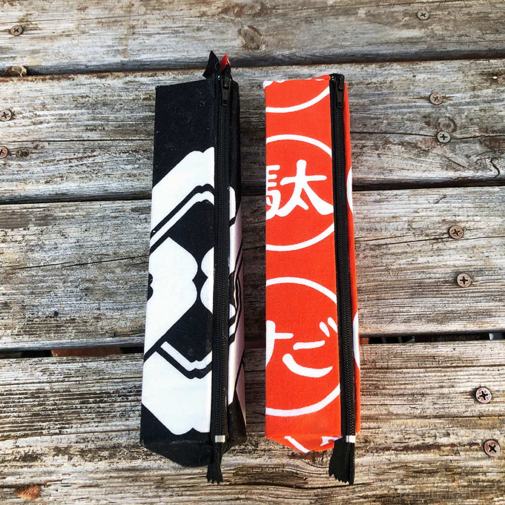 パッケージは、「プラスチックフリー&リユース素材」をコンセプトに、使用済みの米袋で作った簡易な袋と、廃材と布(半被や手ぬぐい)で作ったペンケースの2種類です。こちらも、購入時のパッケージとしてだけなく暮らしの中でお使いいただければと思います。