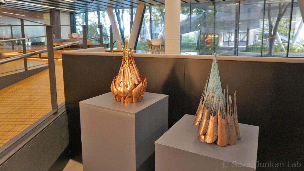 新研究棟には2024年春から横浜美術大学の学生の作品が展示されており、6ヵ月ごとに入れ替えられるとのことです。