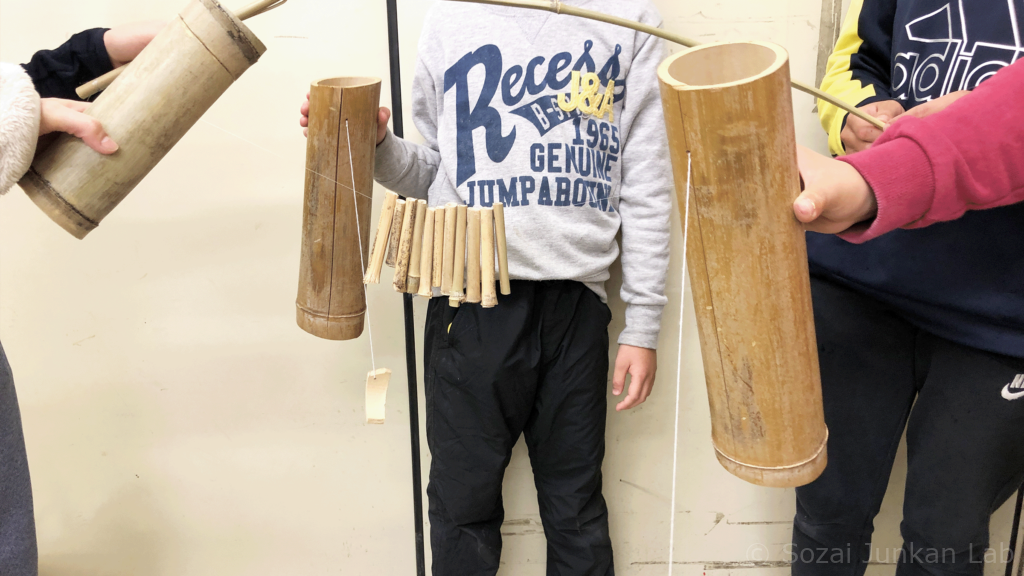 竹ボーリング・竹ぼっくり・竹弓矢・竹けん玉・竹くらべ、いずれも41竹Lab特製! - 竹楽器の演奏体験