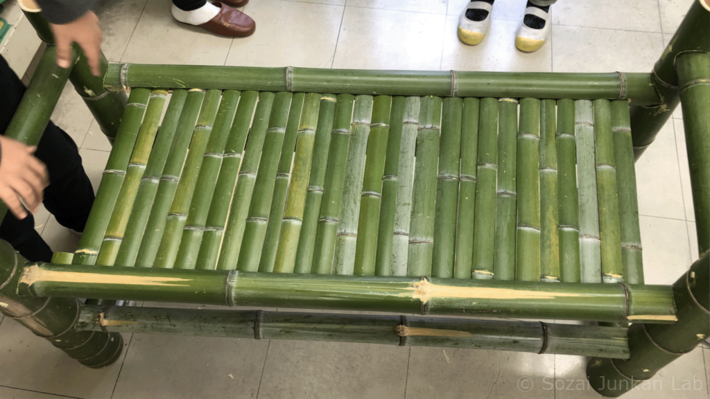 41竹Labからのリクエストで、SOZAi循環Labのメンバーが竹で作った道具やおもちゃを展示します。 - 竹ティピー&ベンチの展示