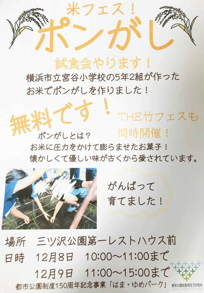 - 横浜市記者発表:宮谷小学校の児童が地域住民に向けて企画した竹フェス・米フェスを公園で実現します!